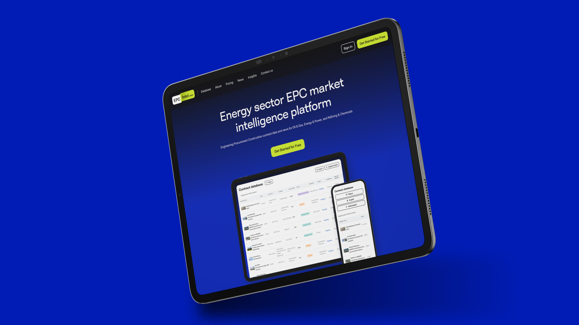 The EPC market is fragmented: information about awarded contracts, contractors and capital flows is scattered across PDF reports, press releases and private notes. The client needed a platform that consolidates this data layer in one interface while also working commercially — turning visitors into trial users, and trial users into paying customers without a hostile paywall.